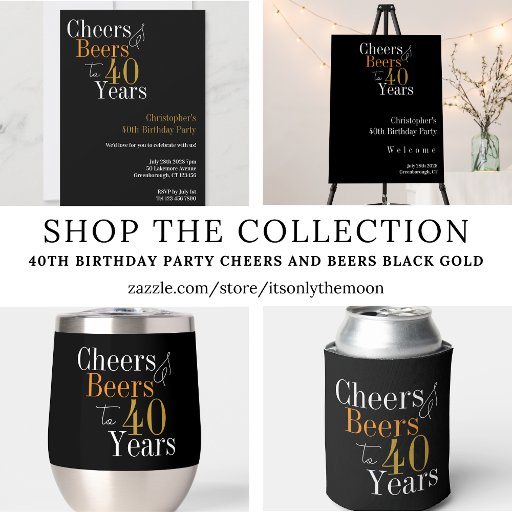 This is a cool and modern, 40th birthday party design. It has a cheers and beers theme on the front and space to add your name and year on the back. It is a simple typography design, in classic black and white, with pops of orange and gold colored typography. Perfect for a cool and fun, 40th birthday party, and ideal as a party game, gift or party favor keepsake. This design is fully customizable, simply use the personalize this button to change the age, or the rest of the text, or use the editing tool to change the color or font. If you need help with personalization, matching products, or for a custom design, contact me via zazzle chat or email: ursuladawnmoon@gmail.com