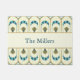 Bring Gatsby-era elegance to your space with this personalized Art Deco Door Mat. Featuring a refined teal and gold geometric pattern on a creamy pale yellow background with a classic name band, it’s a perfect adornment for your home and for luxe gift giving.
