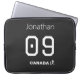 Secure your device with a professional edge using this customizable laptop sleeve featuring a bold, athletic jersey-inspired layout. Specifically designed for Canada soccer fans, students, and athletes, this laptop sleeve allows you to personalize the name and number to showcase your own player identity or support your favorite pro. The sleek black design and high-contrast white lettering provide a clean, modern aesthetic that appeals to Canadian sports enthusiasts looking to bring their national pride into the office, classroom, or cafe. Whether you are a youth player heading to practice or a dedicated supporter protecting your tech on the go, this durable accessory serves as the ultimate functional gift for anyone loyal to Canada football.