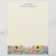 "hummingbird birds floral nature", "hummingbirds sunflowers flower field", "yellow pink purple flowers", "spring summer bird art", "pretty beautiful ruby throated", "personalized customized name meadow", "personal custom stationery notepad", "girly feminine cream sunflower", "summery flowery hillside", "soft pastel hills"