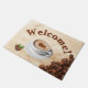 Create a warm and inviting entrance with this stylish coffee-themed doormat.