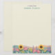 "modern contemporary floral nature", "sunflowers flower field illustration", "yellow pink purple flowers", "spring summer botanical art", "pretty beautiful", "personalized customized name meadow", "personal custom stationery notepad", "girly feminine cream sunflower", "summery flowery hillside", "soft pastel hills"