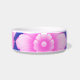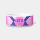 Vibrant pink adds a modern touch to this classic vintage floral fancy pet dish - personalize