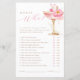 Challenge your guests with a fun Guess Who game! Featuring a golden and pink prosecco glass adorned with delicate pink florals and petals.