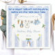 A Charming Delivery from Mr. McGregor's Garden! This theme features a custom hand-painted frame of a crisp blue vertical stripe pattern accented with a lush greenery wreath, creating a clean, classic, and welcoming look. A sweet watercolor clothesline is strung across the center, proudly displaying tiny, adorable items, each subtly featuring Peter Rabbit. The scene is completed with a darling blue bow holding a bunch of fresh carrots all rendered in a soft watercolor style. Easily add your own details and change the font style, size color and placement if you would like to.