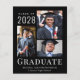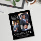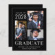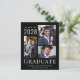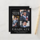 3つのフレンドリー写真写真コラージュとホワイトタイポグラフィの「卒業」を特徴とするバジェット・ブラックの卒業エレガント発表。学年、学年、大学の名前を付ける。
