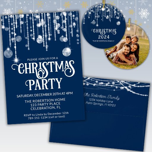 Photo Navy Blue String Lightsクリスマスパーティー セラミックオーナメント