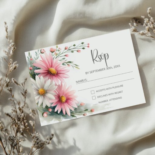 Pink and White Daisies Wedding Details エンクロージャーカード