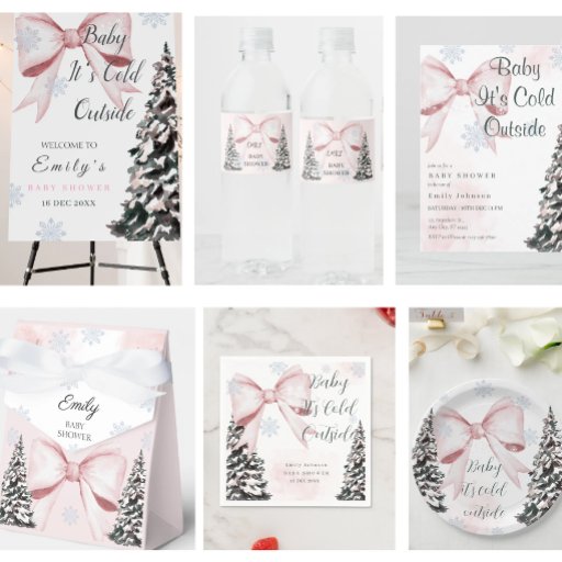 Pink Baby It's Cold Outside Bow Girl Baby Shower 招待状