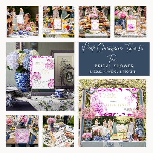 Pink Chinoiserie Bridge Wine Raffle Bridal Shower エンクロージャーカード