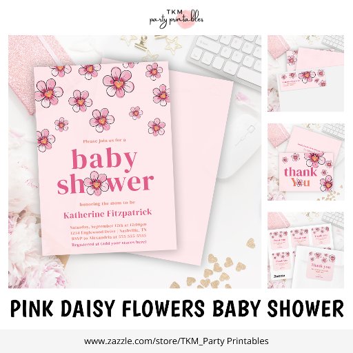 Celebrate your baby girl in the sweetest way with this Pink Daisy Flower Girl Baby Shower Invitation! Featuring cute pink doodle flowers with adorable orange heart centers, this charming design is perfect for a modern and whimsical baby girl shower. The soft pink tones and playful floral accents set the tone for a joyful celebration filled with love.