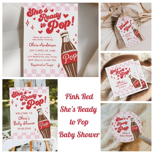 Pink Red She's Ready to Pop Baby Shower 招待状