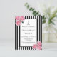 Classic slim black and white stripes as background. With romantic pink roses, and the the Eiffel Tower as decoration. A black and white frame with templates for your party information.A girly, feminine and elegant 16th birthday party invitation.