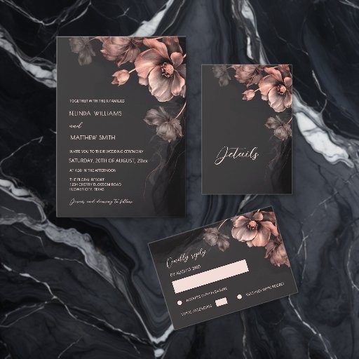 Pink Shiny Metallic Black Floral Details エンクロージャーカード