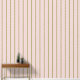 Light pink wallpaper with dark green pin stripes widely spaced.