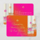 PixDezinesのレセプションカードは、ピンクとオレンジの偽のシルクのタリットを特徴とし、偽の金、銀、銅と星のデヴィッドが偽のパールにプリントされています。 B'not Mitzvahに最適。 完全にカスタマイズ可能で、背景を削除して新しい背景を追加するだけです。 フォントとフォントの色も同様です。 com