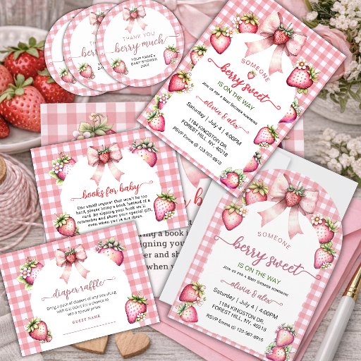 Whether you're planning an intimate gathering or a grand celebration, our "Berry Sweet Baby Shower welcome sign sets the tone for a delightful event filled with love and anticipation. Personalize this watercolor plaid berry sweet baby showr welcome sign with your event details in script fonts and get ready to shower the baby with all the love and sweetness they deserve!
