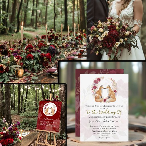 Bring a touch of playfulness, romance, and rustic fall beauty to your big day with this unique fox wedding invitation.