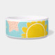 Make mealtime exciting with this cheerful ceramic pet bowl that's as fun as your furry family member! Decorated with an adorable pattern of happy paw prints, dog bones, bouncy tennis balls, and smiling pet faces, this colorful bowl turns breakfast and dinner into a celebration.