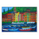 Portfino、人気があるな芸術家によるリサロレンツイタリアの美しくカラフルな場面
