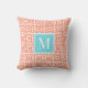 Preppy Square Lattice Monogram - Coral & Turquoise アウトドアクッション