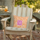 Preppy Square Lattice Monogram Hot Pink & Orange アウトドアクッション