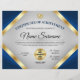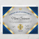 Award someone with this Professional & Elegant 8.5x11 Certificate of Achievement Award Flyer featuring gold & blue color tones, and a grey gradient background. Includes two gold medal awards and two signature lines.