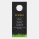 Announce your professional lawn care and landscaping services with this eye-catching door hanger. Featuring vibrant green grass at the bottom and a clean, modern design, this door hanger is perfect for promoting your business. The "Our Services" section clearly lists lawn care, mowing, landscaping, mulching, yard cleanup, leaf removal, seasonal maintenance, and more, ensuring potential clients know exactly what you offer. The bold yellow "Our Services" title stands out against the black background, making it easy to read from a distance. This design is ideal for landscaping businesses looking to expand their clientele and make a professional impression on every doorstep they visit. Make your landscaping services unforgettable with this striking door hanger.