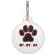 Médaille de naissance de votre puppy, médaille avec sur la face 1, l'image de patte de puppy motif "gravure" noir et rouge, le nom du puppy que vous pouvez personnaliser et sur la face 2, l'image de patte de puppy et la date de naissance de votre puppy personnalisable aussi.