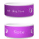 The design has a sleek 'eat, play, love' theme, symbolizing the joy of pet ownership. The background features a cool, modern purple gradient that ranges from a pinkish purple to bright purple. Whether they're eating their dog food or drinking water, this durable, high-quality dish makes a delightful pet accessory for any home. It's a thoughtful dog mom or dog dad gift for birthdays, holidays, or any special day.