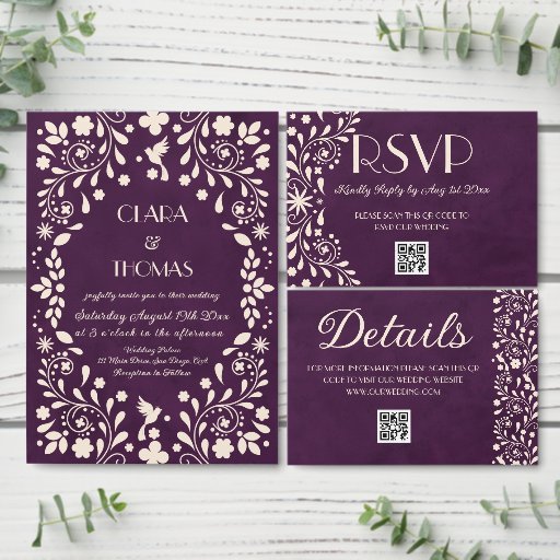 Purple Ivory Mexican Wedding Photo Invitation 招待状