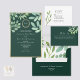 QRコード付きエメラルドグリーンの植物婚礼 オールインワン招待状