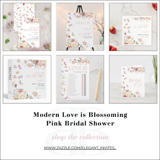 This Love Is Blossoming bridal shower invitation features a romantic watercolor floral design filled with soft pastels, delicate butterflies, and airy spring blooms. Elegant typography paired with flowing script creates a timeless, feminine look that feels both graceful and celebratory—perfect for honoring the bride-to-be.