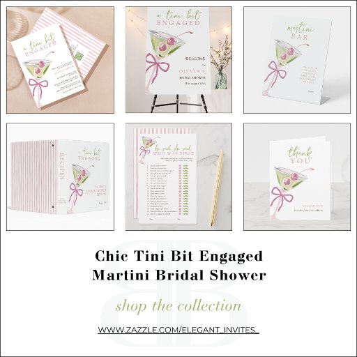 martini bridal shower invitationsbridal shower cocktail partyhappy hour bridal shower invitationsqr codetini bit engaged quotepink and greenwatercolorelegantchicmodern