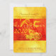 果実と小さなマウスの黄金の紙カットとデザイン+大きな黄金2020 +スクリプト書"Year of the Rat"と黄金の願い中国ので+装飾背景でイデオグラム竹とそれ以上。デザインラウンドフラットカード+ゴールデンとバックカスタマイズに文字。はがき、グリーティングカード、クラフト製品など2020年中国のの新年に最適。
