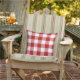 This outdoor pillow features a traditional gingham check plaid pattern in red and white. Ideal for summer on the patio, deck, or porch.
