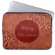 Red Gold Pixels and Flowers, Gold Merry Christmas ラップトップスリーブ