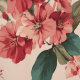 A lively red hibiscus watercolor floral pattern on a soft pink background.