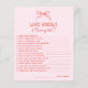 Have fun with this red and pink hand drawn bow baby shower game, a sweet twist on the classic Who Knows Mommy Best activity. Perfect for a holiday shower, Valentine theme, or girly celebration, it features charming sketched bows and playful modern typography. A delightful addition to your baby shower bundle, this fun game adds color, laughter, and love to your special day.