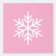 This modern festive design features a large alpine snowflake against a background of light pink.