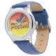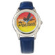 Este relógio da eWatchFactory é o acessório que você queria! Curta o conforto da pulseira de couro azul e não esqueça de personalizar o seu novo relógio com uma imagem, design ou texto.