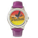 Relógio Infantil Roxo de Aço Inoxidável e Pulseira de Couro