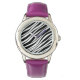 He creado un diseño de reloj infantil de pulsera de cuero morado y acero inoxidable en forma de cebra