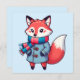 L'image représente un renard stylisé et adorable, vêtu d'un manteau et d'une écharpe pour l'hiver.