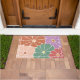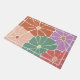A Retro boho floral doormat featuring oversized blooms in dusty pink, warm orange, soft green, plus a hint of lavender for a cheerful summer vibe. The bold graphic flowers feel sunny, playful, and instantly welcoming, like a little burst of color right at the door. Perfect for a front porch refresh, patio season, beach house style, pool days, apartment entryways, or anywhere you want that happy retro mood to greet people first. Also a sweet housewarming gift, hostess gift, or summer birthday gift for anyone who loves mid century inspired color and boho chic home decor.
