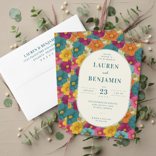 This is a minimalist style image featuring an elegant wedding ceremony program for Lauren and Benjamin. The design uses a soft, pastel green color palette on a light beige background, creating a serene and sophisticated atmosphere. The text is neatly organized with classic typography that adds to the timeless feel of the event. It details each part of the ceremony, from the procession to the recessional, making it both informative and aesthetically pleasing. Perfect for couples who appreciate simplicity and elegance in their special day.