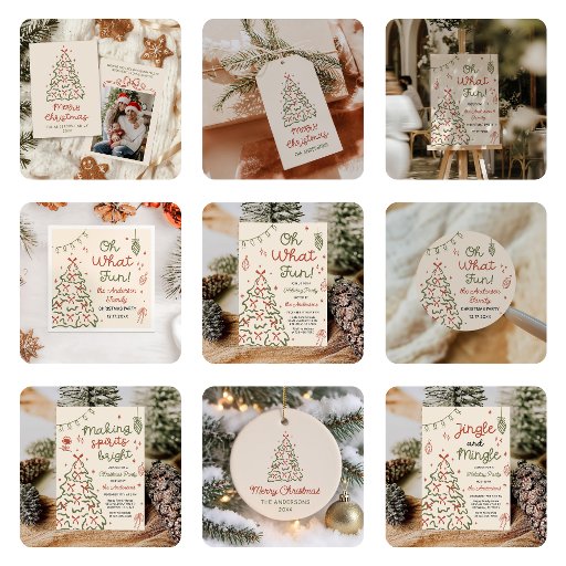 Retro Hand Drawn Christmas Tree Holiday Party Gift Tags