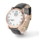 Enhance your style with this custom trendy monogram wristwatch, featuring a black and white Roman numeral classic design. This personalized initial monogrammed watch is perfect for those who appreciate vintage elegance and timeless sophistication. Whether you're celebrating a wedding, birthday, anniversary, or other special occasion, this luxurious watch makes an unforgettable gift.