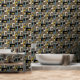 Bring a touch of retro flair to your interiors with this joyful wallpaper featuring a unique geometric design. The retro mood pattern combines calm and vivid colors that can transform any room into a stylish haven. Perfect for those looking to make a bold statement, this wallpaper is sure to impress your guests and enhance your decor. Explore the endless possibilities of revitalizing your environment and express your personality with this eye-catching design.