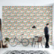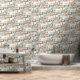 Bring a touch of retro flair to your interiors with this joyful wallpaper featuring a unique geometric design. The retro mood pattern combines calm and vivid colors that can transform any room into a stylish haven. Perfect for those looking to make a bold statement, this wallpaper is sure to impress your guests and enhance your decor. Explore the endless possibilities of revitalizing your environment and express your personality with this eye-catching design.